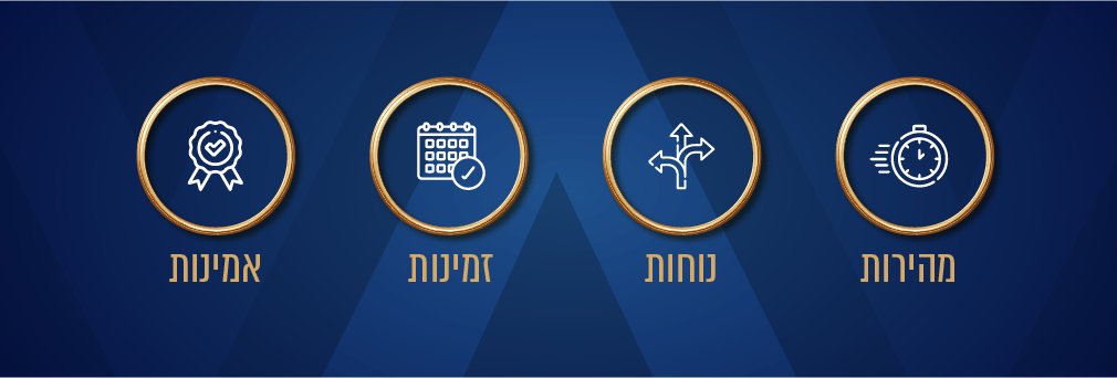 זמינות- הזמן שלכם יקר לנו לכן נעשה הכל על מנת להיות זמינים ויעילים.